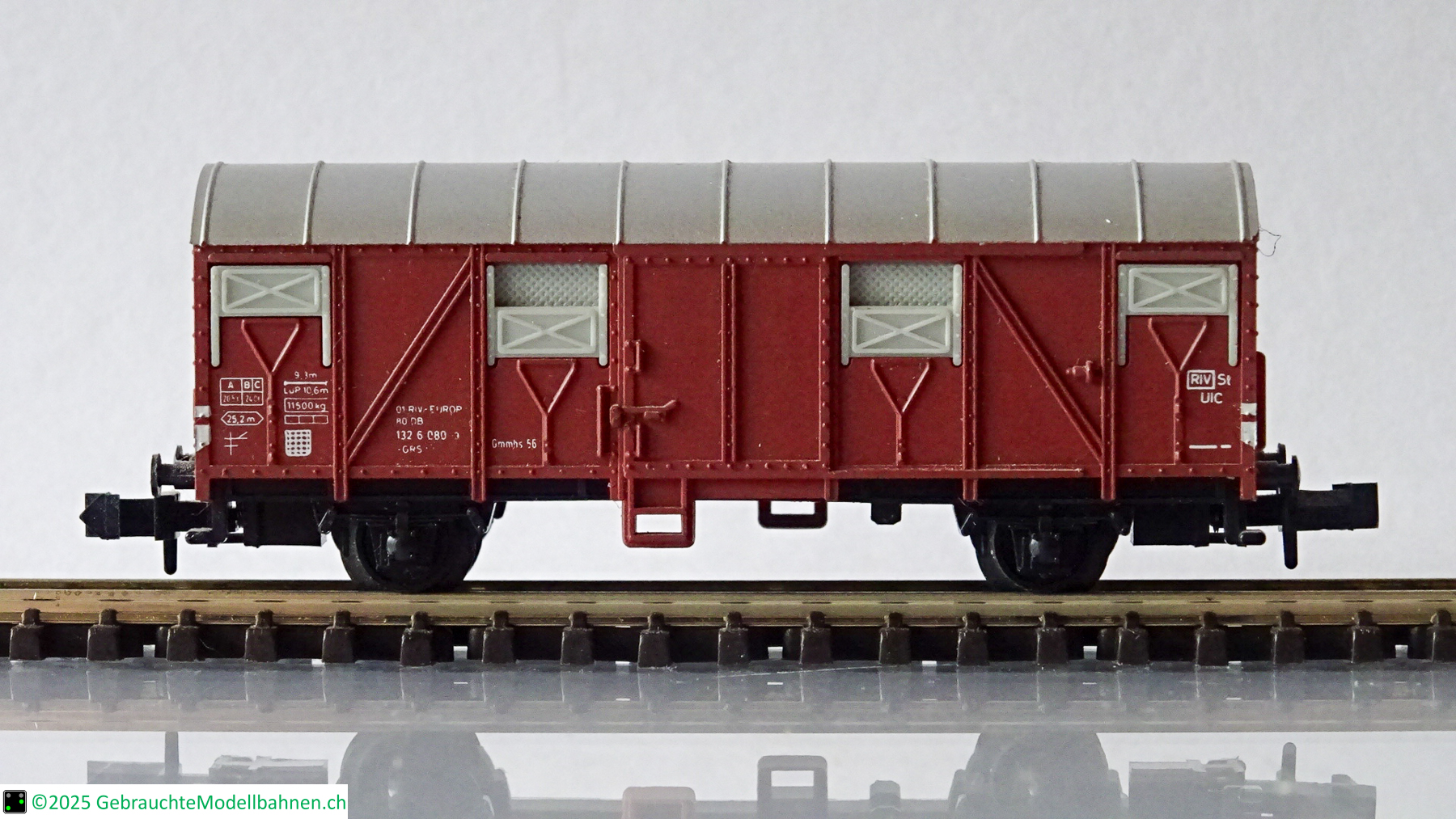 Bezeichnung: | 2-achsiger gedeckter Güterwagen, braun, Dach silbergrau |